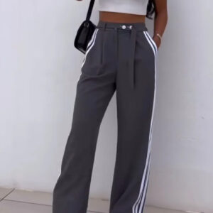 Παντελόνι ψηλόμεσο με ρίγες – Μόνο σε Χακί χρώμα